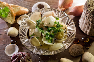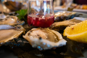 Half-dozen local oysters with champagne mignonette and fresh horseradish.