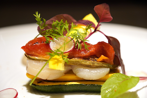 Mixed greens, shaved radish, cucumber with honey-shallot vinaigrette.